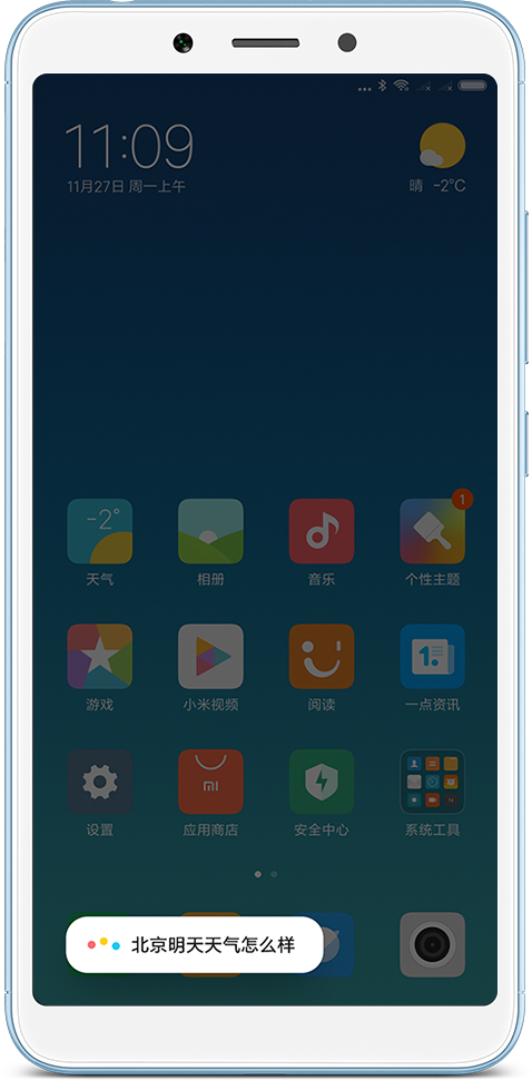 * ИИ в Xiaomi RedMi 6 настраивается на любую аппаратную кнопку, либо клик по приложению ИИ. Запуск приложения ИИ голосом не поддерживается.